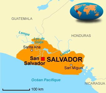 El Salvador, oficialmente República de El Salvador, es un país soberano de América Central ubicado en el litoral del océano Pacífico con una extensión territorial de 20 742 km².6 En el año 2014 contaba con una población estimada en 6 279 783 habitantes,1 siendo el país más densamente poblado del continente americano. Su clima es cálido tropical. El Salvador limita con Guatemala al oeste y con Honduras al norte y al este, al sureste el Golfo de Fonseca lo separa de Nicaragua, y flanqueado al sur por el Océano Pacífico.